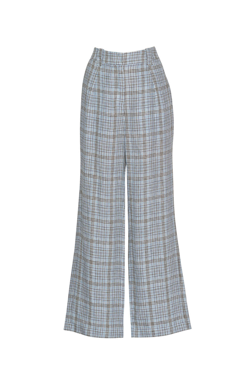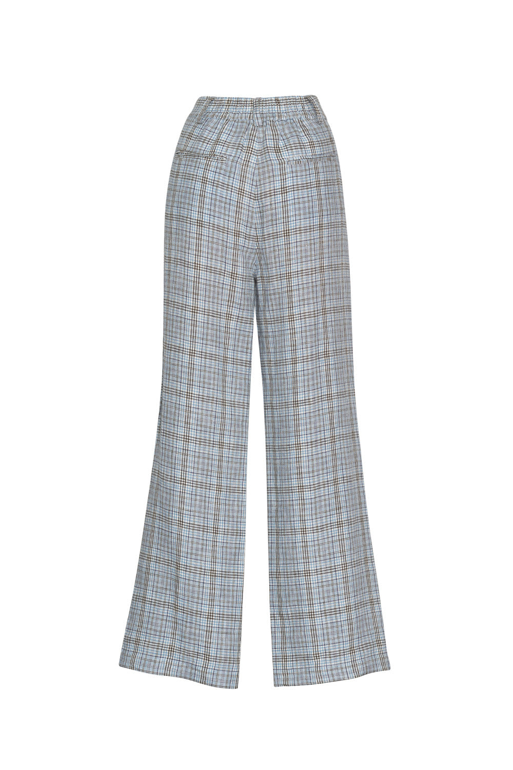 Linen plaid pant with an elasticated back waistband, side front pockets. Functional front fly.