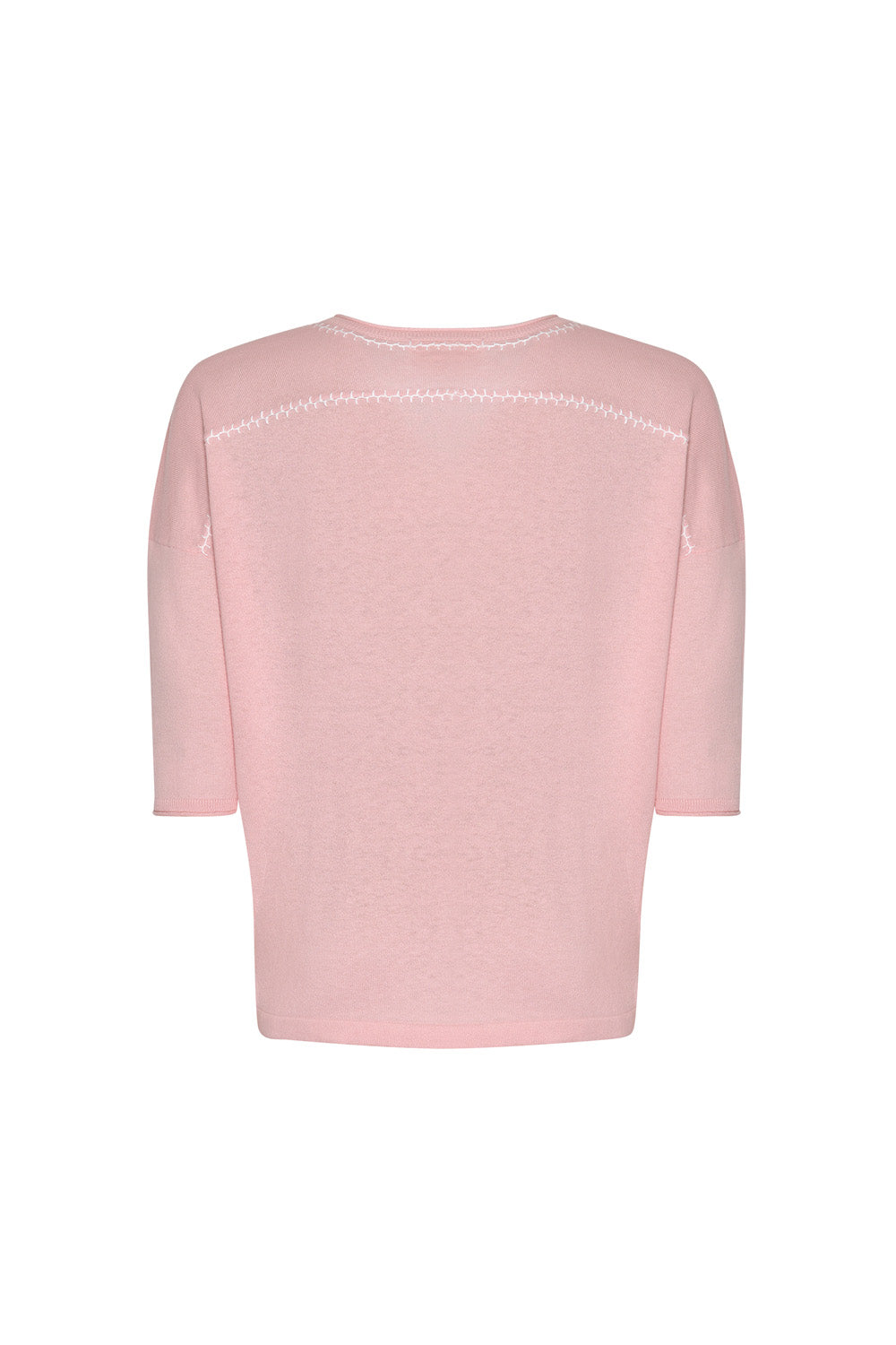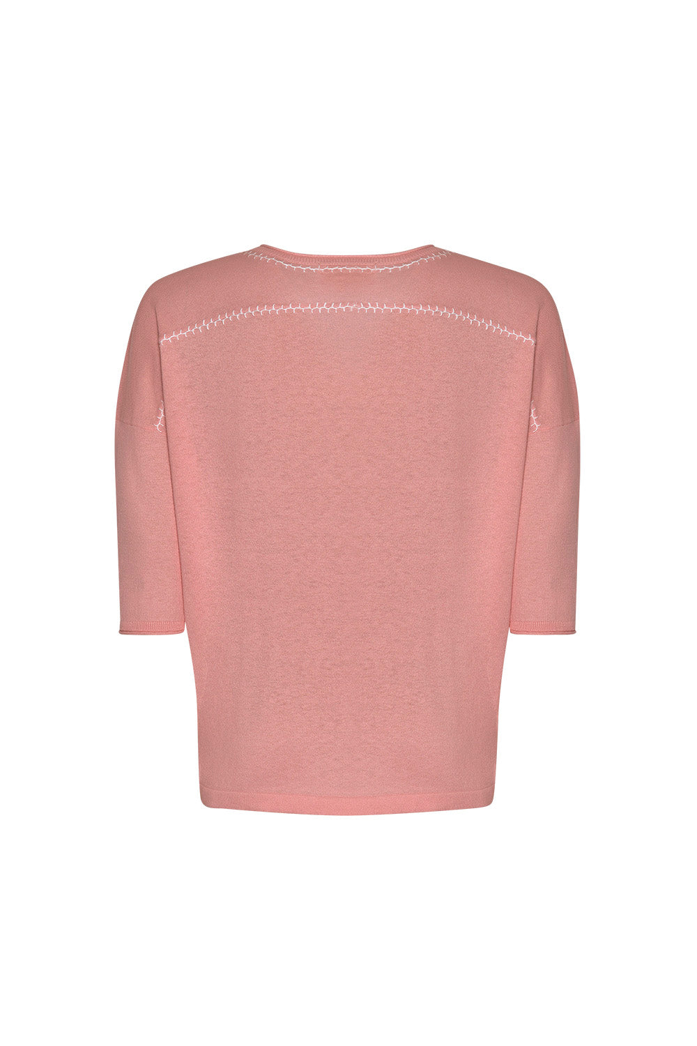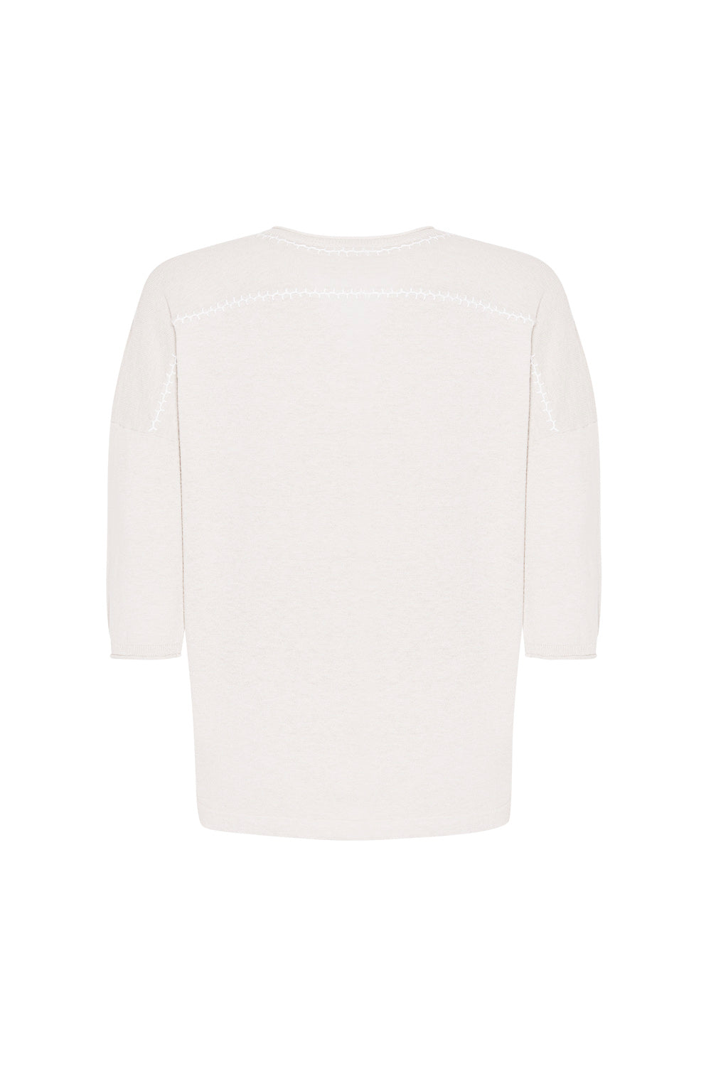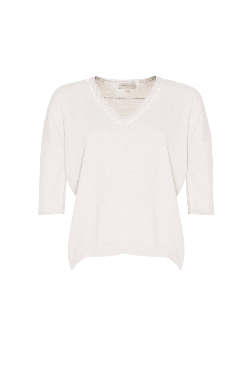 Relaxed V-neck tee in cotton-cashmere, featuring hand-embroidered detail around the neckline and back yoke.