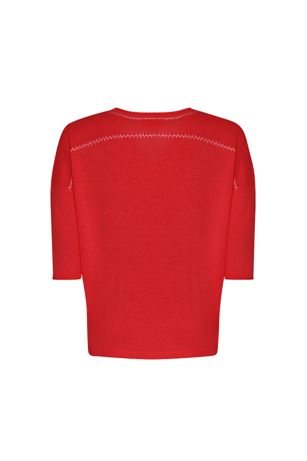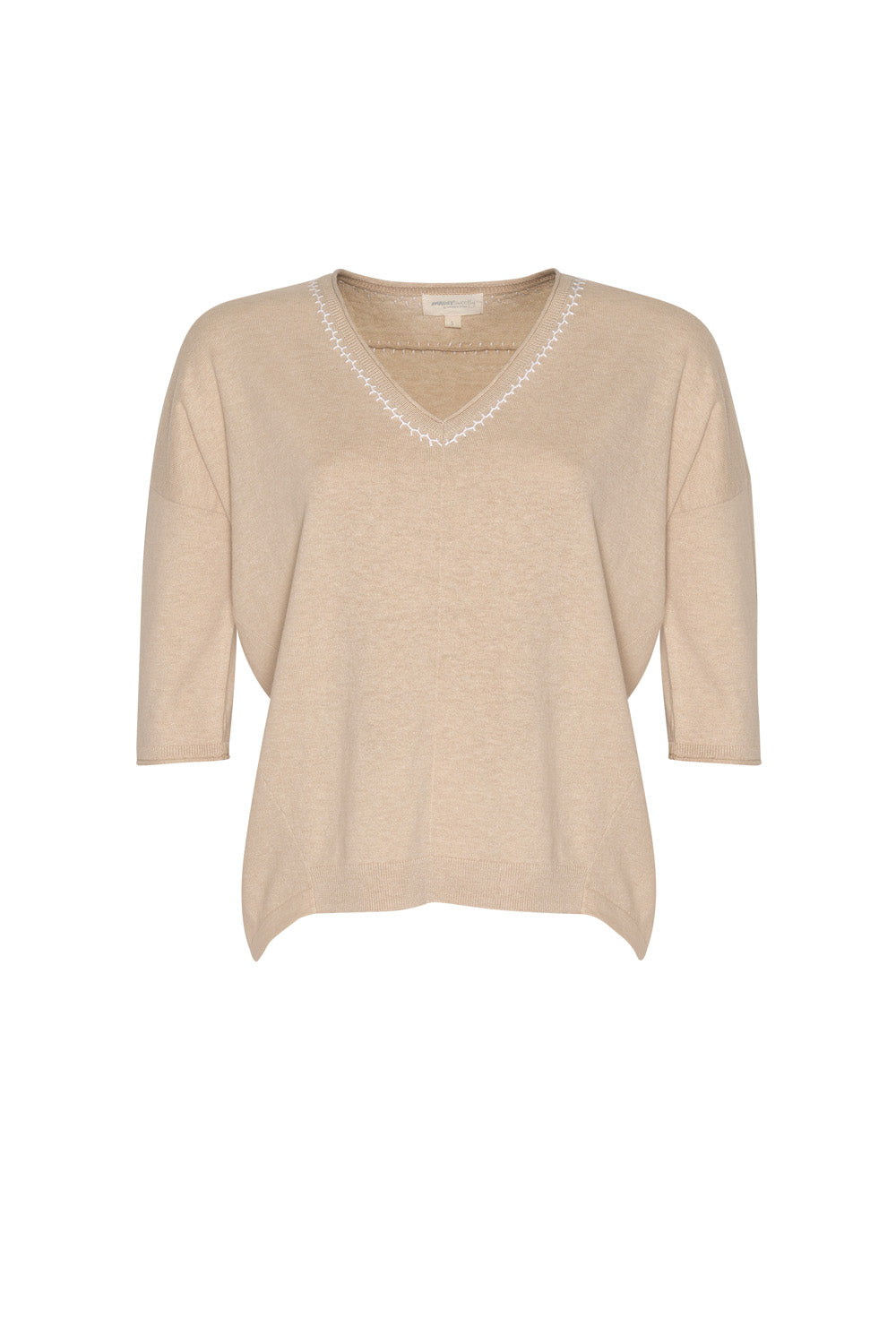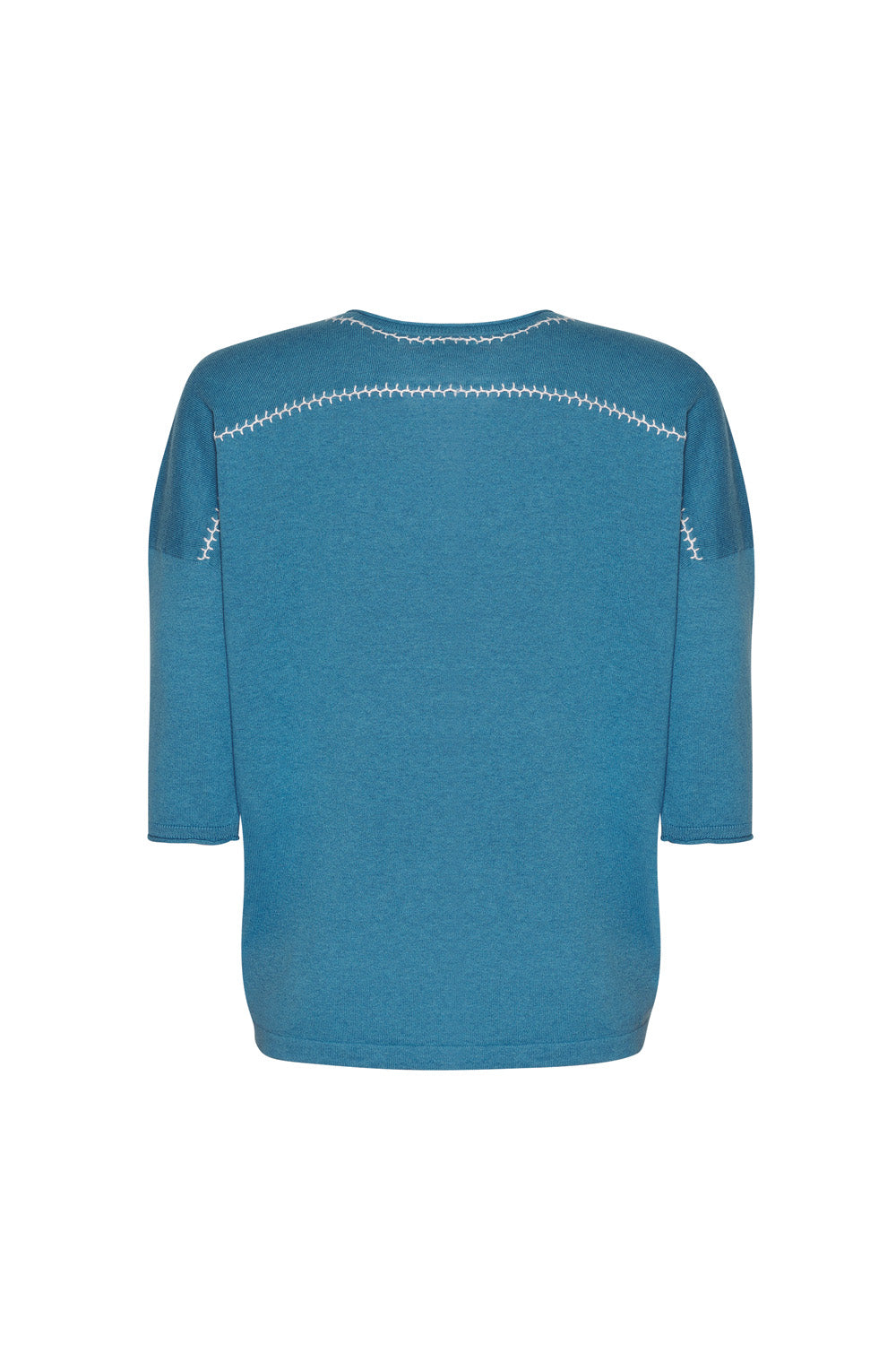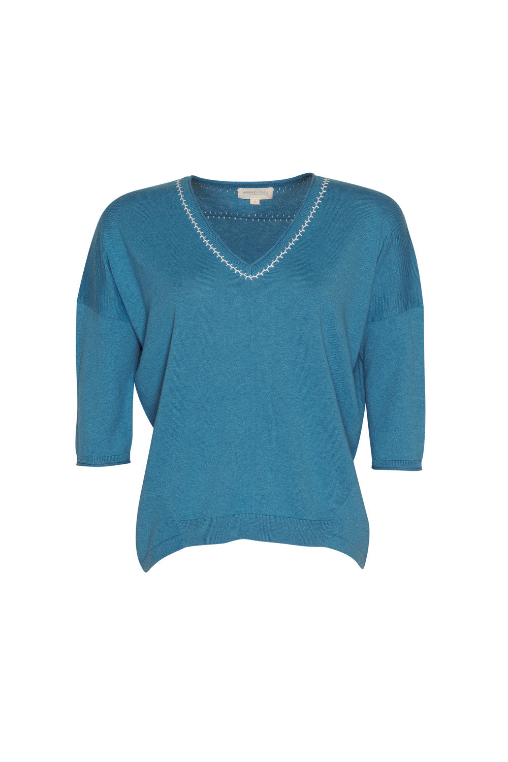 Relaxed V-neck tee in cotton-cashmere, featuring hand-embroidered detail around the neckline and back yoke.