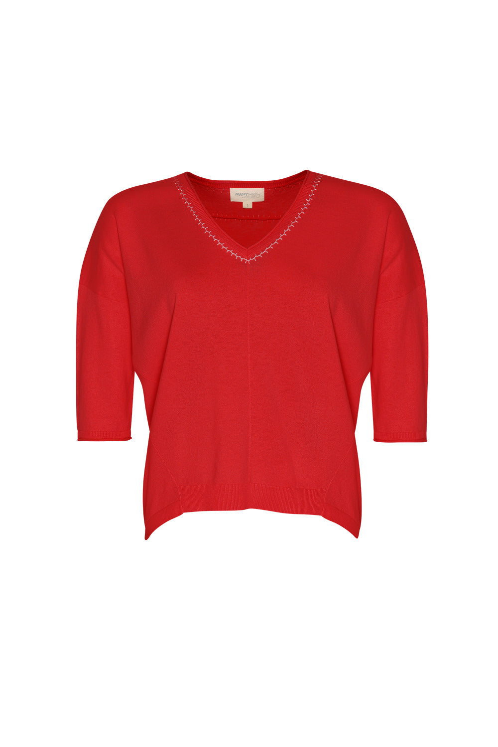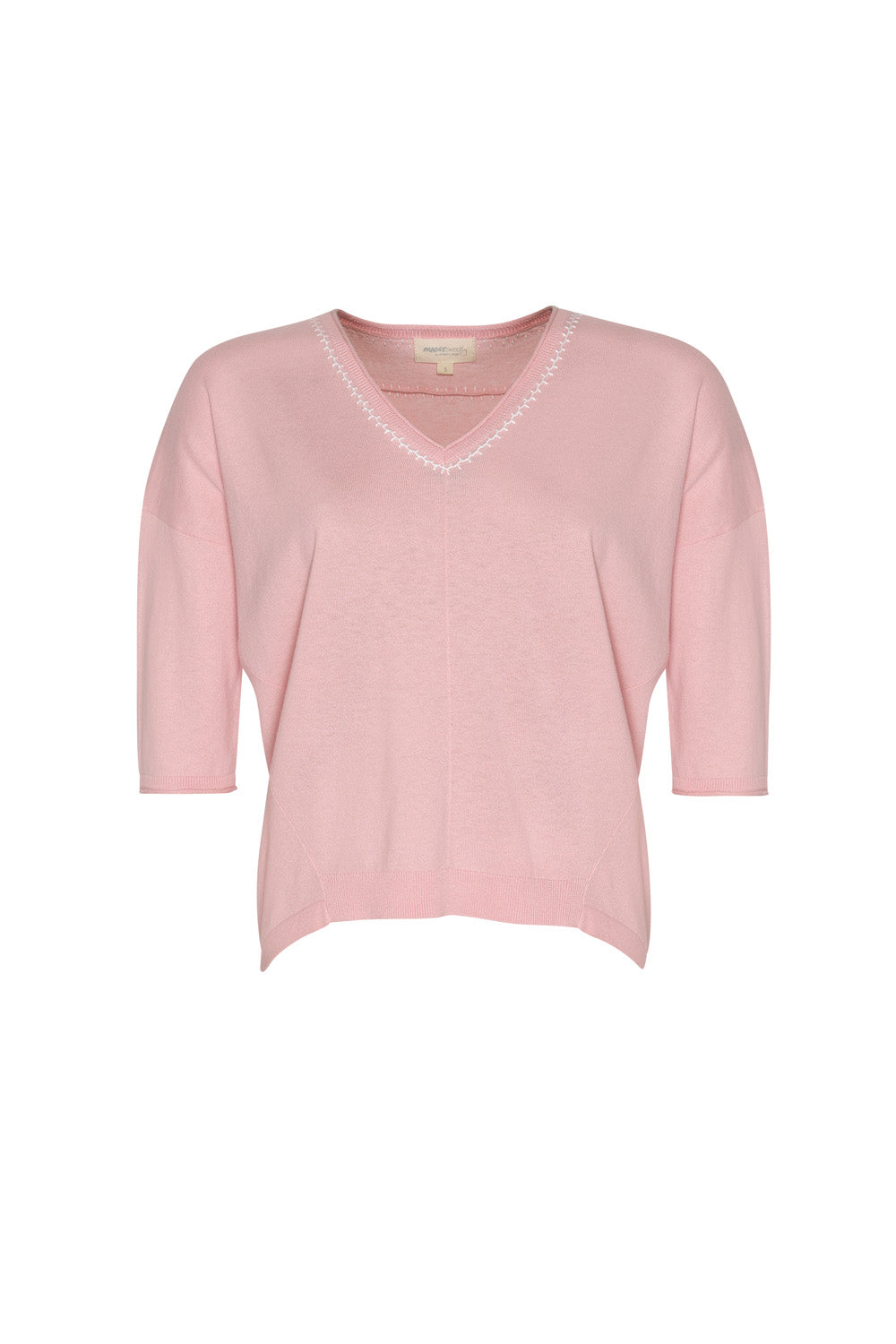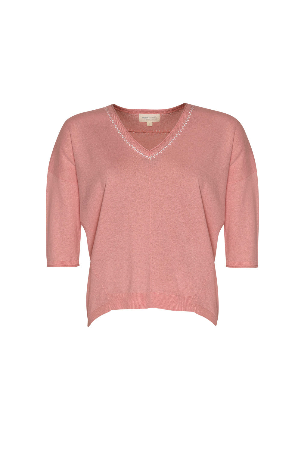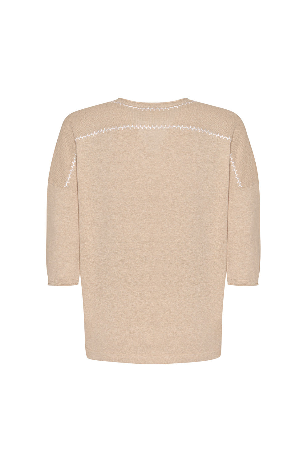 Relaxed V-neck tee in cotton-cashmere, featuring hand-embroidered detail around the neckline and back yoke.