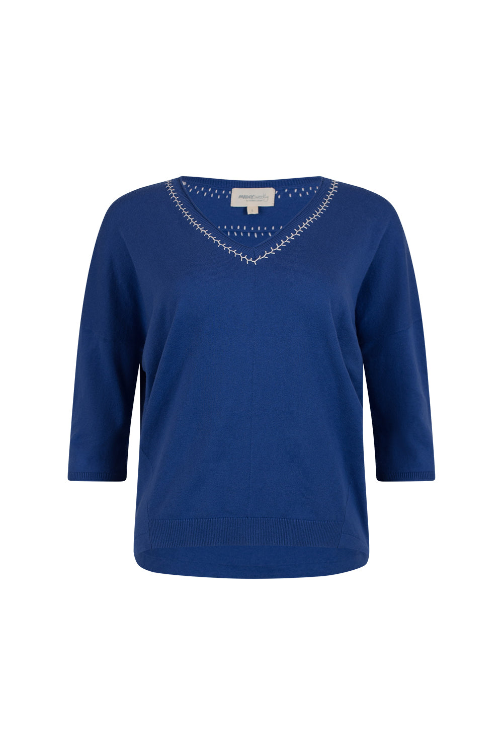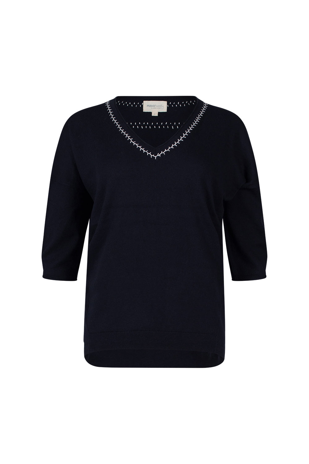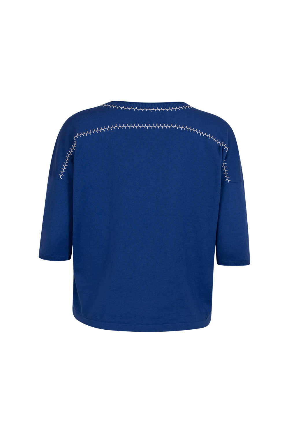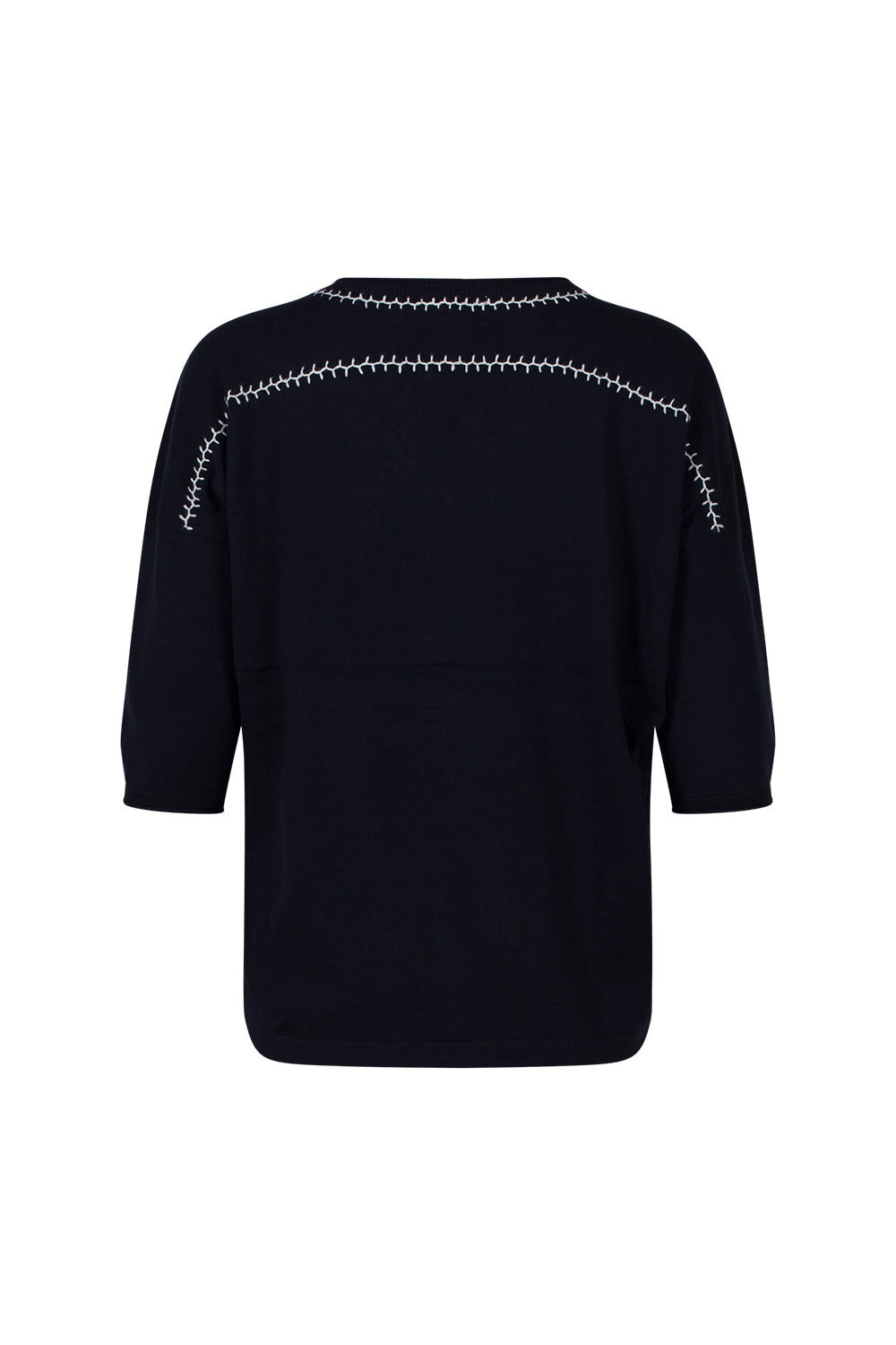 Relaxed V-neck tee in cotton-cashmere, featuring hand-embroidered detail around the neckline and back yoke.