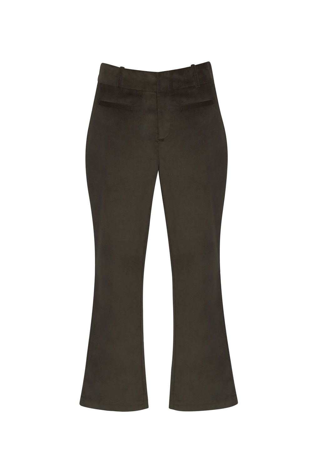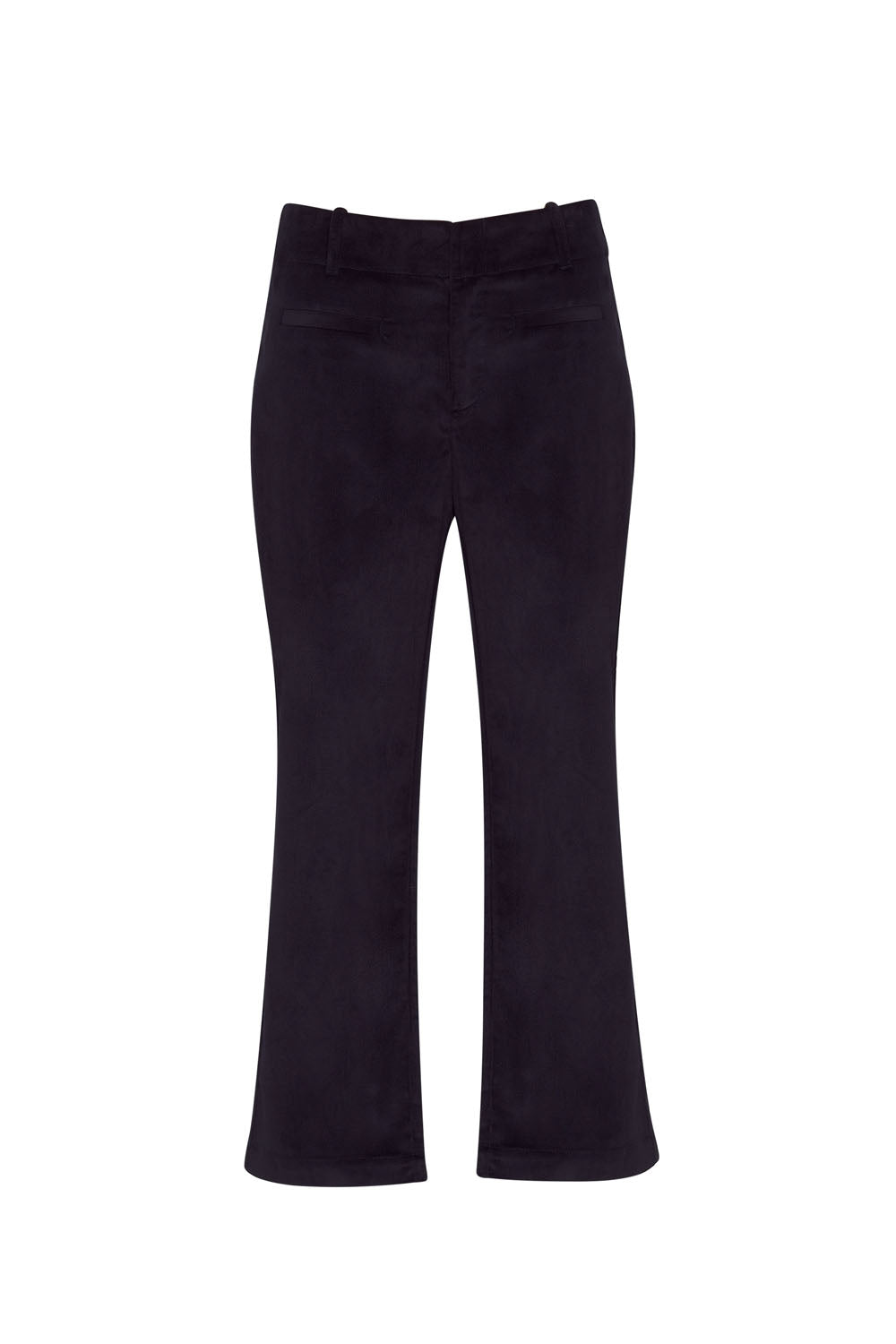 7/8 length pant featuring a flattering deep waist facing, faux jet pocket detailing front and back, front fly, hidden hook fastening and generous belt keepers.