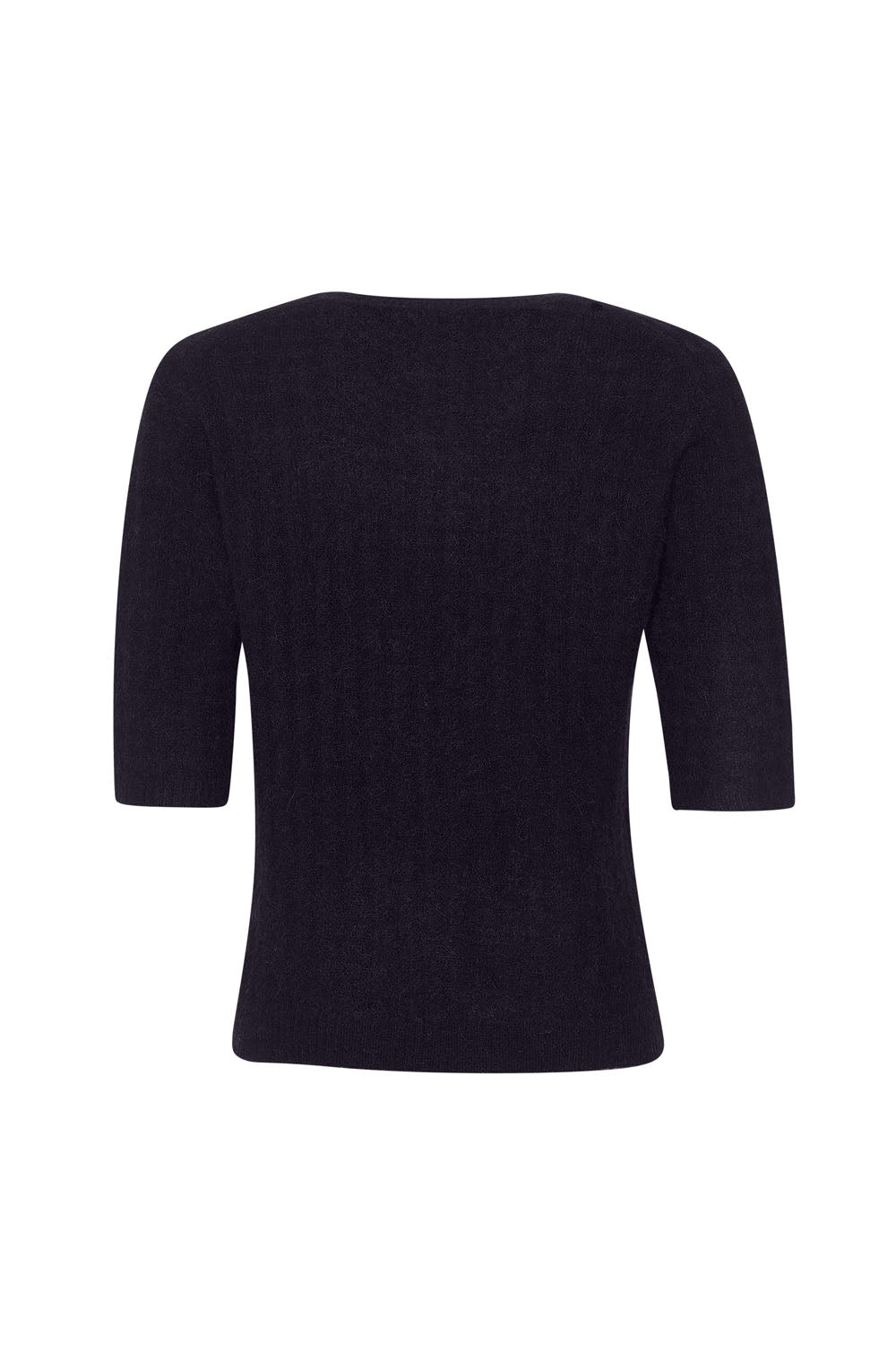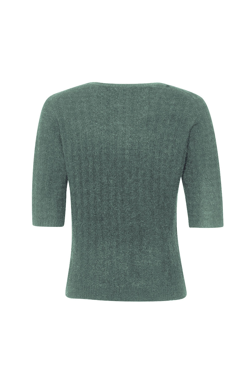 Classic slim-fit tee with a round neckline and a half-length sleeve knitted in a soft micro-check eco-Alpaca blend.