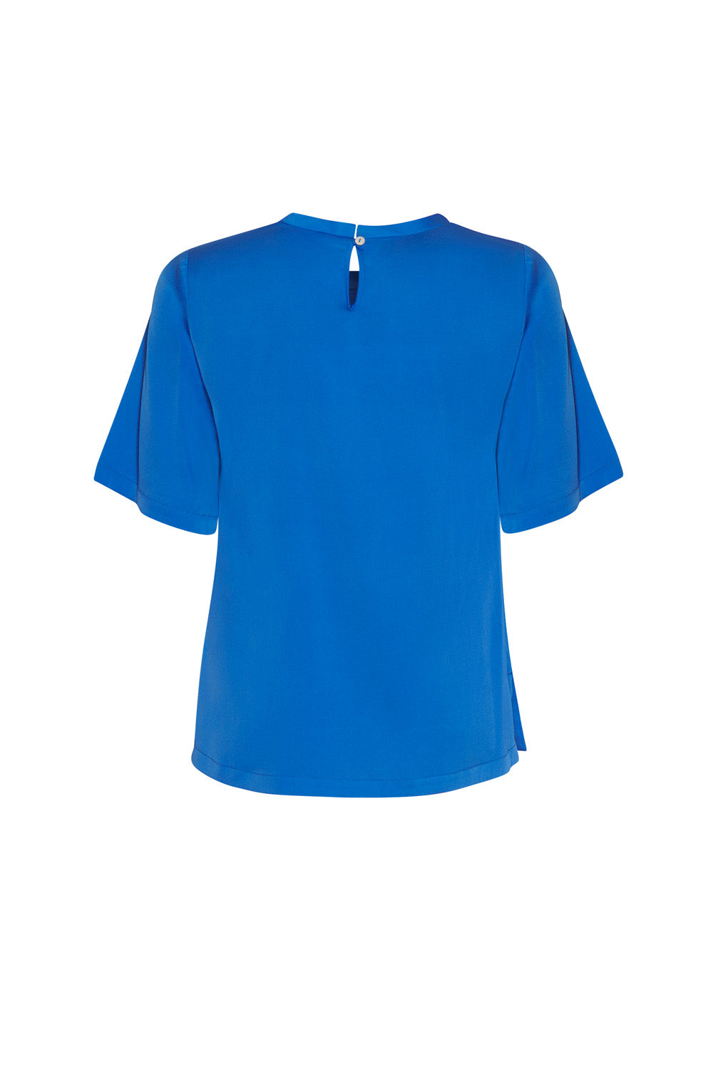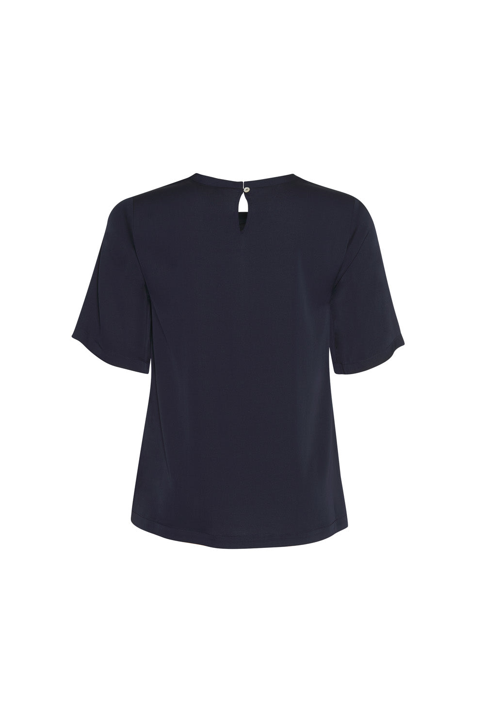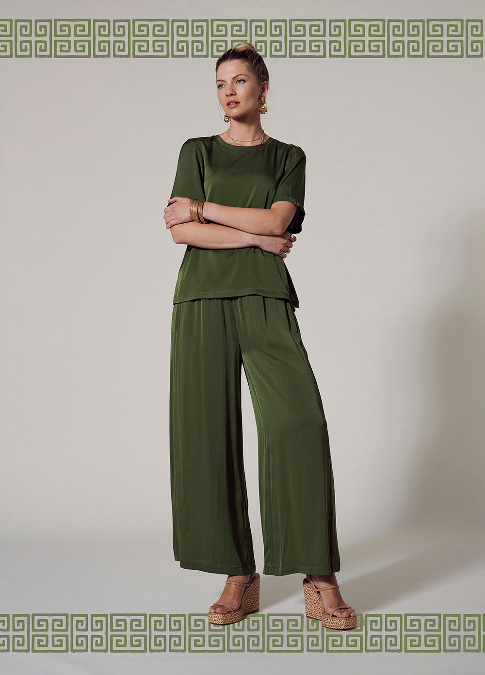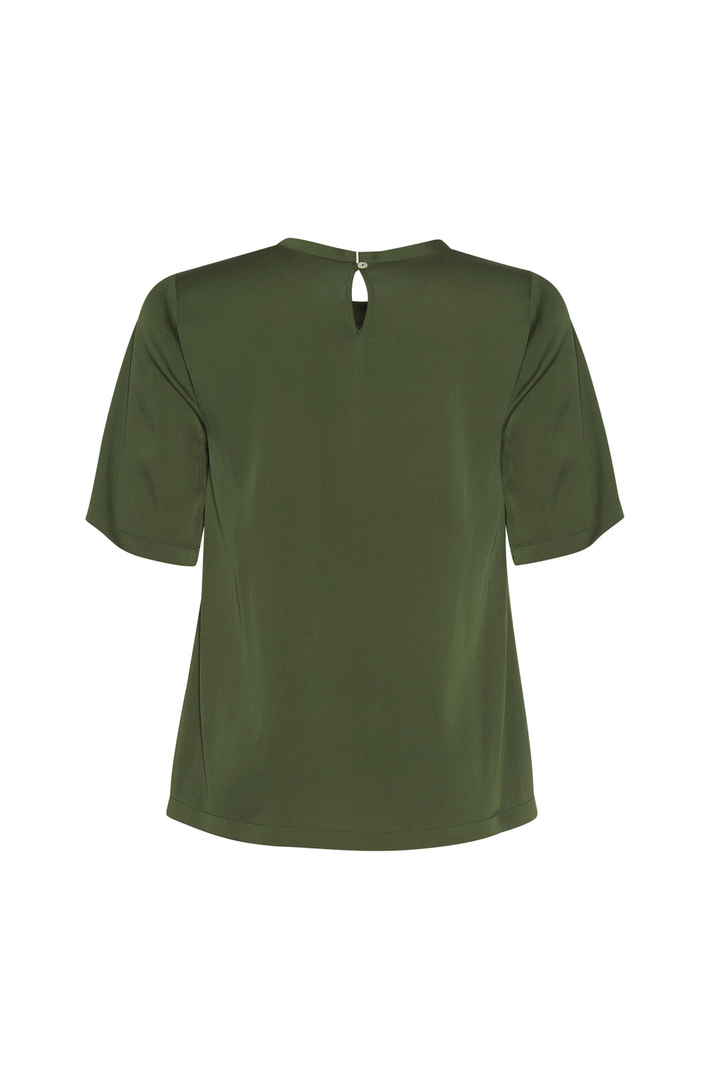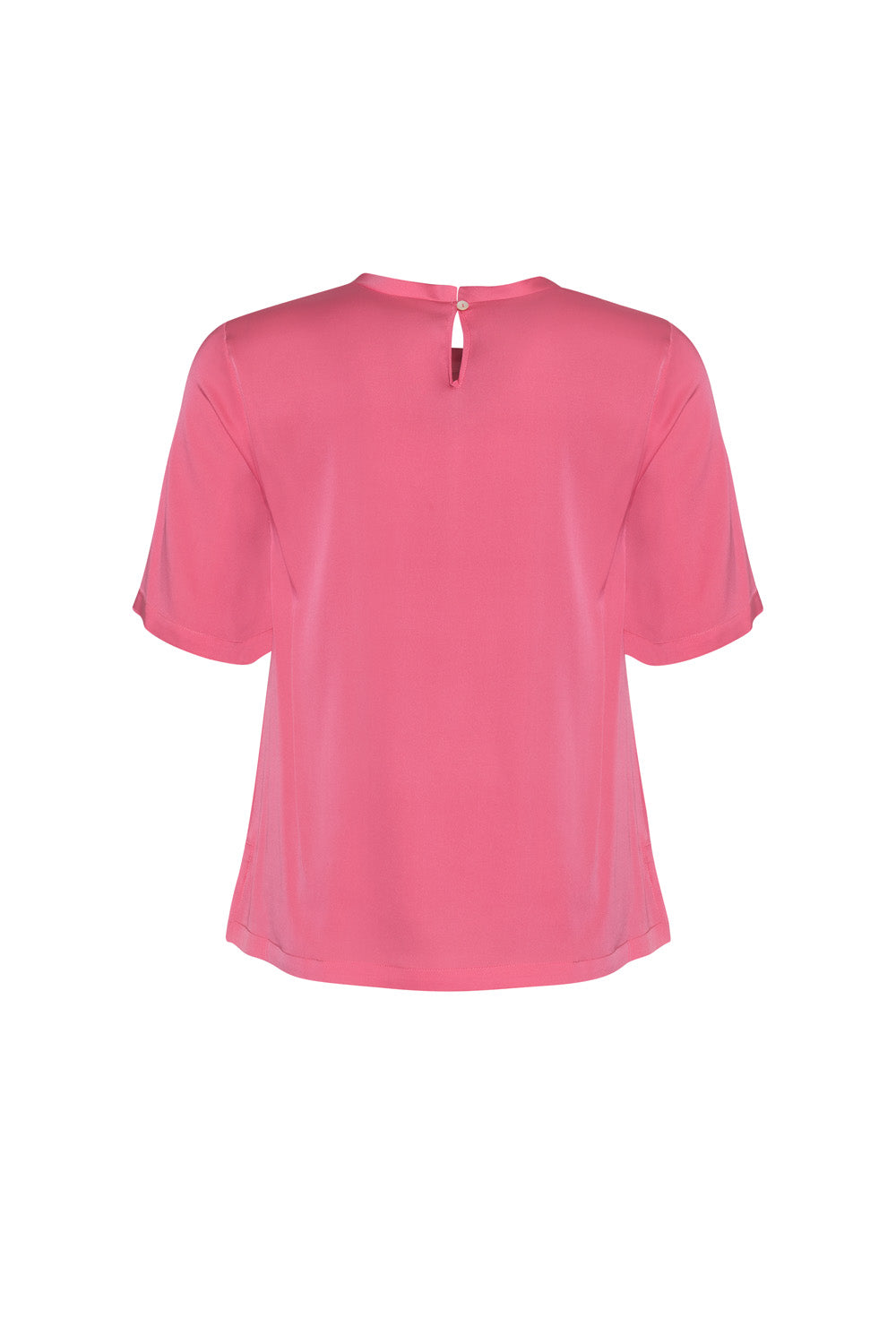 Luxe stretch silk satin tee with a round neckband and square hem with side splits.