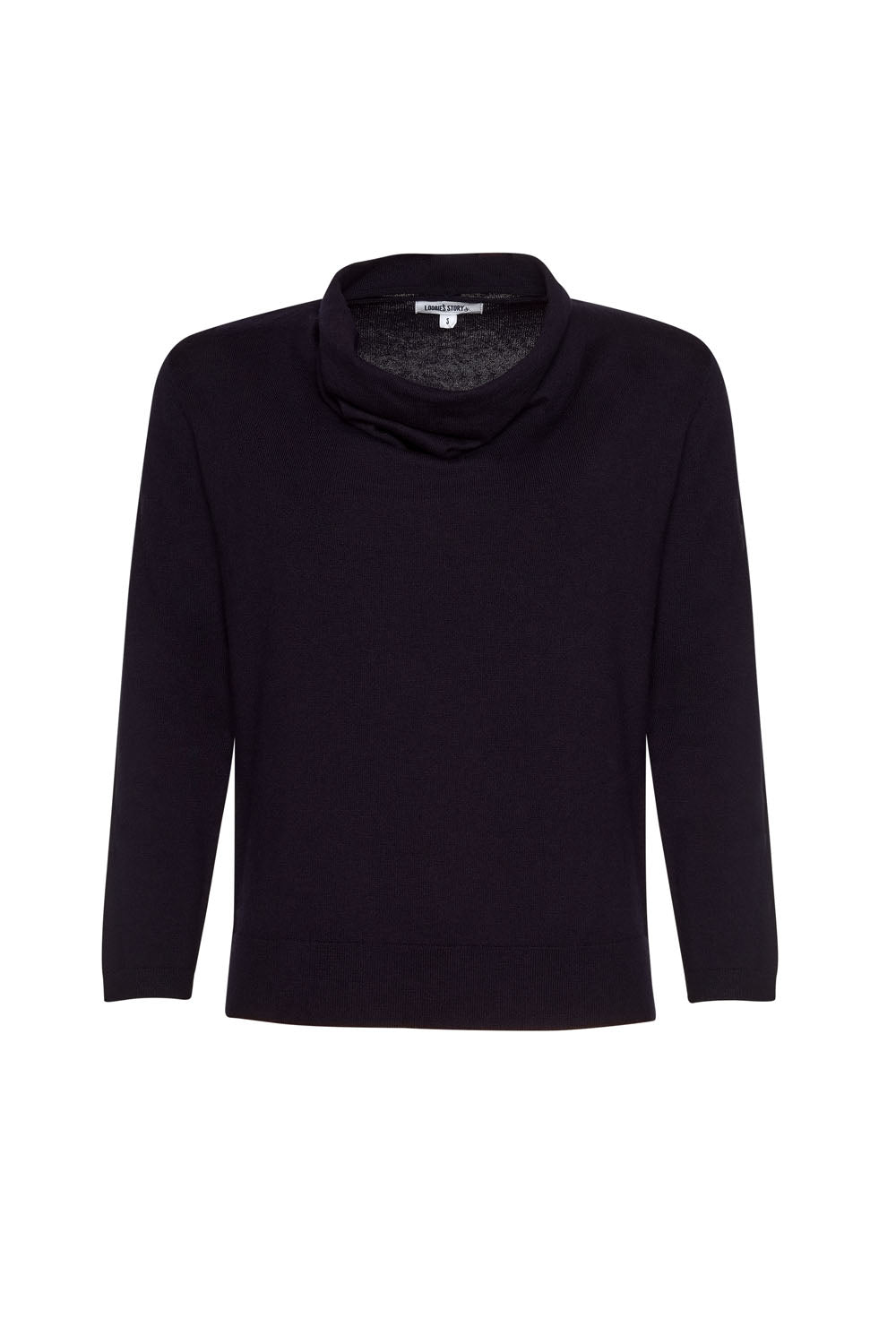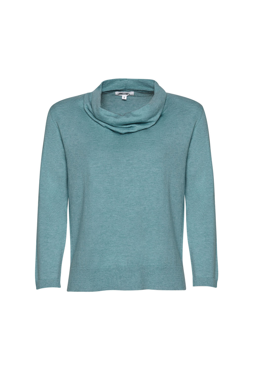 Draped deep cowl-neck Tee with 3/4 length sleeve in a fine Merino Wool and cotton blend.